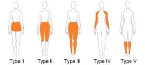 Lipedema fat is classified by anatomical location, and every lipedema patient falls into one or more Types (I–V) based on where abnormal fat accumulates.